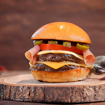 Contiene: dos carnes, queso manchego, jamón, jitomate, cebolla, jalapeño, catsup, mostaza.
